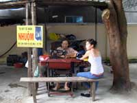 | A brief stop at a colourful local market. Remarkably all Vietnamese markets are colourful. and around the outside were ladies sewing away on the old Singer machines | ||||