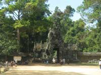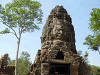 Ta Prohm is one kilometre east of Angkor Thom and was founded by the Khmer King Jayavarman VII as a Mahayana Buddhist monastery and university. Unlike most Angkorian temples, Ta Prohm has been left in much the same condition in which it was found: the photogenic and atmospheric combination of trees growing out of the ruins and the jungle surroundings have made it one of Angkor's most popular temples with visitors