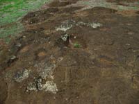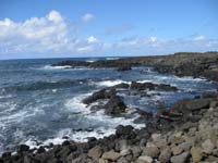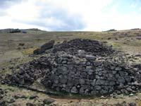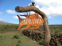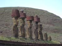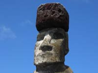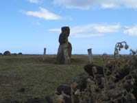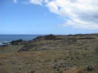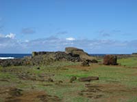 All the moai on Easter Island were toppled during the tribal wars of the 1700.s and only a handful have been resurrected by archeologists in the last hundred years. Only the occasional single standing moai can be seen along the south coast, but there are a great many fallen statues. This bit of our drive appeared to be just to get us into the mood of the moais. In a way you could say "when you have seen one fallen moai, you have seen them all". An ahu with toppled moai has the appearance of a pile of rocks, and the moai themselves are not particularly impressive face down. It appears that when the natives toppled moai, they removed the eyes, then pushed the statues over face down. That way any residual power that the statue might have had to cast the evil eye on their desecrators would be diminished