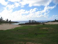 ahu with 7 moai and a sand | .. beach which is the larger.. | ..of the two sandy beaches on .. | .. the island. |