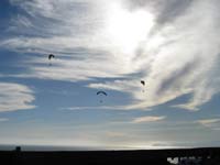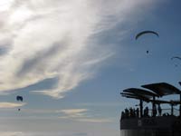 | As dusk fell, lots of para-gliders | filled the sky along the cliffs. | We went down to this pier to .. | ..enjoy a sundowner. |