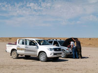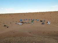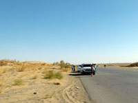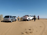 The next morning, a somewhat delayed start after breakfast. It all seemed to be down to the drivers and their responsibilities. There were 4 Turkmen staff employed directly by the ground handling agent, and 3 Russians who were self employed and owned their own jeeps. The Russians were, or believed they were, employed only to drive, and so were not employed to help with breakfast or dismantling the camp.