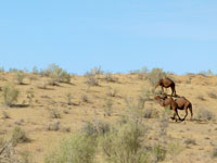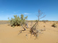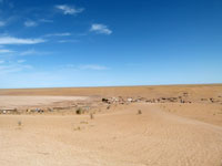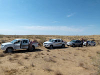 We continued our drive through the desert today, entering the Central Karakum Desert, and visited the remote settlement of Damla at about lunchtime. The track across the dunes and salt marshes was a challenge for the drivers and meant a bumpy ride in places. Put on top of that the Russian drivers wanting to conserve fuel, hence no air-con in the cars. Result was a bit like being thrown round in a hot tumble drier. Further result was that Chris was physically car sick - which was enough to frighten our Russian to put on the air-con.