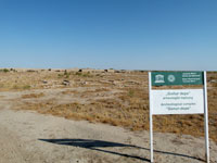 From the aerial shot (we never saw it from this angle, but it gives a much better feel for the place than the scrubby conditions on the ground) one can see that it was a rectangular fortress with powerful defensive walls, semicircular bastions and adobe buildings. Sarianidi discovered a palace and temples with fire altars. According to Sarianidi, Gonur Depe belongs to one of the greatest civilizations of the ancient world (side by side with Mesopotamia, Egypt, India and China) and was the birthplace of Zoroastrianism, a religion based on the opposition of good and evil. Sarianidi also found evidence of a cult based on a drug potion made from poppy, hemp and ephedra. According to the Avesta , the holy book of Zoroastrianism, the drink called Haoma representes a deity that can cure all sufferings. In 2009 a royal tomb was excavated in which the remains of dogs, a cart with wheels having bronze rims and a large bronze cauldron with a diameter of 130 cm and a height of 1 m were found. This cauldron consists of 7 spherical tanks inserted one into the other.
