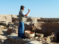 We found that Viktor Sarianidi had recently arrived on site - he is in his 80s now - and we were granted an audience, somewhat stilted because of linguistic difficulties on both sides. But it was interesting to see the great man. There is actually very little to see here on the ground - the best bits have been removed to museums in Mary or Ashgabat