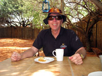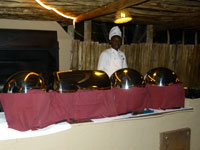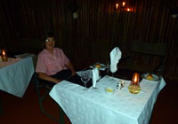 The main dining area at Bagatelle Kalahari Game Lodge is a huge, enclosed porch area. Guests can wine and dine 'al fresco' in the open-air-thatched lapa, and this is where we had an excellent meal. We did not know it at the time, but it was to prove the best cooked meal of all those we ate in Namibia.