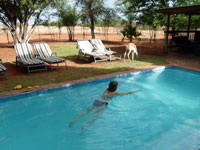 A rambling old farmhouse has been extensively altered, upgraded and renovated over the years, and serves as a residence and administrative centre of the Lodge. An entrance hall leads to the reception, lounge, dining room, bar/cellar and office. There is also a small library with a broad selection of mainly Africa books.