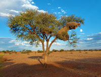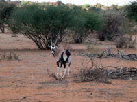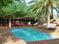 Bagatelle Kalahari Game Lodge is only 50 minutes drive from Mariental. It styles itself a "game ranch" and is located in a mixed tree and Shrub Savanna setting, broken by deep red parallel sand dunes running parallel in a northern-westerly to south-easterly direction. The valleys in between the parallel dunes are commonly known as 'dune streets'.