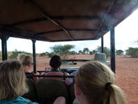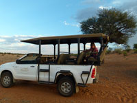 We took their sundowner game drive. This takes you over the road to their extensive private bush area, where there are lots of small game, but nothing like the variety or types we were to see later in the country. It ended up with a "cheetah feeding" which I would not recommend and a drink on the dunes to watch the sun go down (again nothing special, and rather commercial)