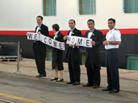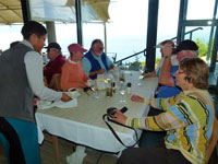 visitors, before heading back to the Silversea Explorer and our final dinner with drinks and photos all round. Then it was for us an early night and a 5am start next day. |