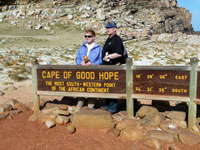 The Cape of Good Hope itself is a few kilometres away on the next headland - pause for tourist photos. Then on, past grazing game to the penguin colony at Boulders .. | ||||