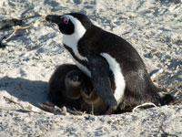 ..near Simons Town,a home to a unique and endangered land-based colony of African Penguins. It is in quite an urban area, and a high boardwalk keeps the grokels and. | ||||