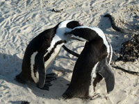 the penguins separated. It is home to about 1000 of the 25,000 breeding pairs of the African Penguin left in the world. Photos were duly taken of both the natives and the | ||||