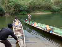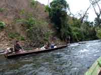 Having said that, the overnight safari is a really nice visit to the wilds of Laos. You journey upriver for several hours to a permanent overnight camp - the former village before the villagers got moved down to the main road area. Our trip was not without a frisson of excitement when the propeller sheered off on a rock, and the boatman had to wade the icy water to recover it, then bang it back on to the prop shaft.