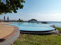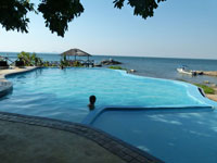 The lodge is on a island, so a boat trip is the only way of getting there. That is obvious, but I never thought that the boat would pull up on an open beach, and not at a jetty. We had to board their boat when there was a large sea running - this necessitated wading waist deep with our luggage, to board the pitching boat. Nobody had warned us in advance of the lack of jetty, so we had to literally remove our trousers and wade out in our underwear - not a dignified way to arrive at the hotel