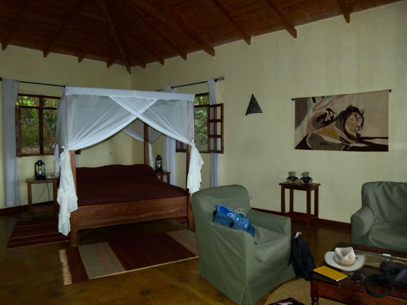 The main lodge area is under a large thatched structure with bar and dining area where all meals are taken. There are 52 cottages and suites in the whole property, the cottages being spread out among the coffee plantations; however it doesn’t feel like a lodge of this size somehow. Happily our room was close to reception, but you could have had a room a long hike away.