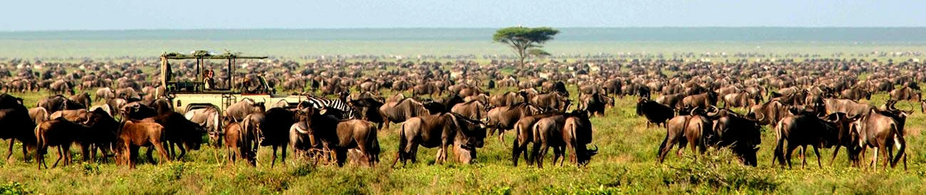 One day we saw the effects of the migration on the local airstrip. Wildebeest, thousands of them, wandered over the runway, and before a plane could land jeeps and men waving their arms had to shift the wildebeest