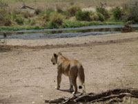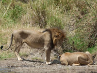 It was interesting watching this lioness half heartedly hunting. She did not appear to make any real effort to disguise her presence, and the quarry soon ran off at high speed. This was followed by a pair of lions mating. The male was quite affectionate