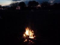 In the evening they lit a camp fire about half an hour before dinner, and there was enough wood to keep it going for about half an hour after dinner. As in many safari camps, you need a security man to escort you back to your tent after dark. Lion were heard at night, and in the morning we woke to see the migration taking place within 100 metres of our tent.
