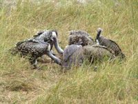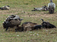 Given that there were tens of thousands of wildebeest, then there were inevitably natural deaths among the herd. This meant that vultures kept an eye on things and moved in when they spotted a meal