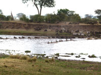 And crocodiles. Given that wildebeest had been crossing for some time, the crocs appear to have taken all the animals that they needed, and we never saw an actual croc attack while we watched 6 crossings. But we did see a fair number of crocodiles sitting watching the wildebeest crossing
