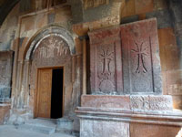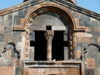 The oldest part of the monastery is the single nave basilica of St. Karapet (i.e. Holy Forerunner, John the Baptist) that was founded at the beginning of the fourth century by St. Gregory the Enlightener, who baptized Armenia into the world’s first Christian nation. The wooden roof of the early church was replaced in 554 AD with a thatch cover, and the basilica itself underwent profound renovation between 1652 and 1734.