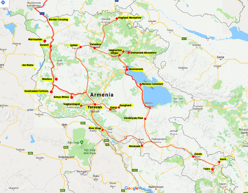 Our itinerary can be followed in detailby clicking on the links below. There is also a brief history of Brief history of Armenia page and a UNESCO sites in Armenia page