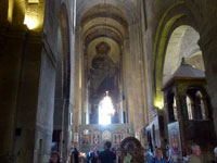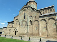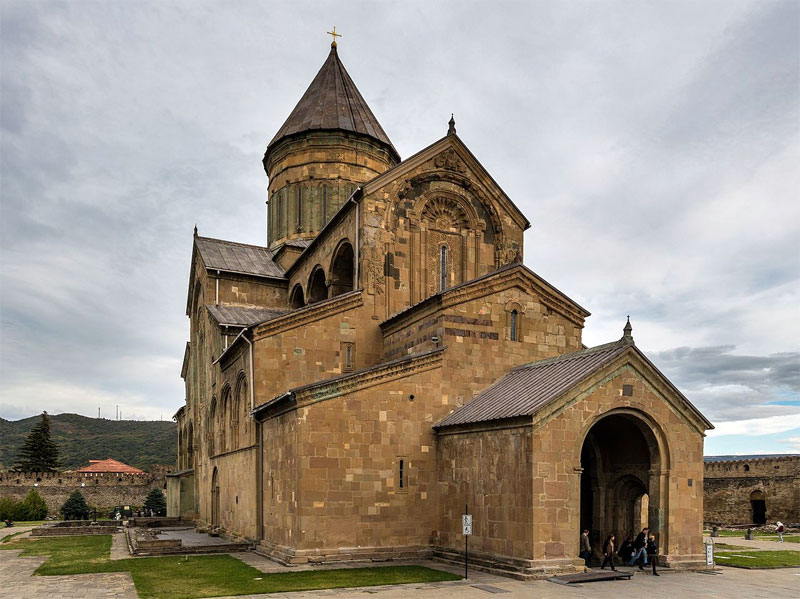 Dates from 11th century.. Known as the burial site of Christ's mantle, Svetitskhoveli has long been one of the principal Georgian Orthodox churches and is among the most venerated places of worship in the region. The present structure was completed in 1029 by the medieval Georgian architect Arsukisdze, although the site itself dates back to the early fourth century. Svetitskhoveli is considered an endangered cultural landmark; it has survived a variety of adversities, and many of its priceless frescoes have been lost due to being whitewashed by the Russian Imperial authorities