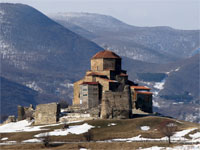 Jvari Monastery dates from the 6th century. It stands on the rocky mountaintop at the confluence of the Mtkvari and Aragvi rivers, overlooking the town of Mtskheta. According to traditional accounts, on this location in the early 4th century Saint Nino, a female evangelist credited with converting King Mirian III of Iberia to Christianity, erected a large wooden cross on the site of a pagan temple. The cross was reportedly able to work miracles and therefore drew pilgrims from all over the Caucasus. A small church was erected over the remnants of the wooden cross in c.545 named the "Small Church of Jvari".