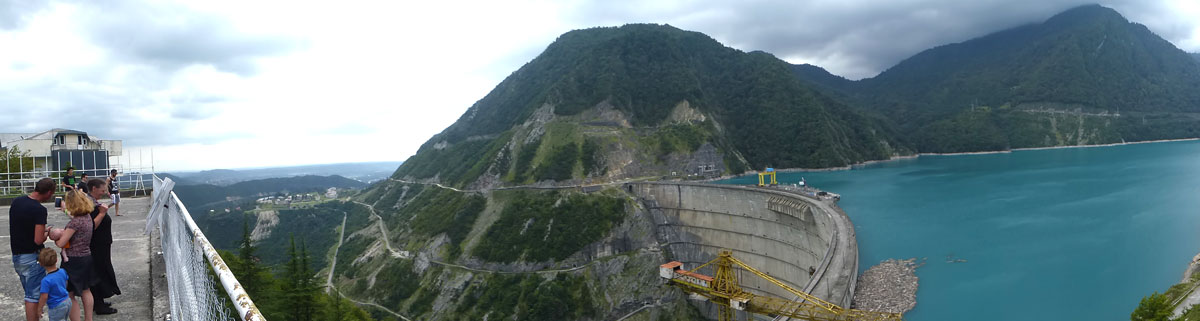 On from Zugdidi we skirted the border with Russian occupied Abkhazia, and past the The Enguri Dam. This is a hydroelectric dam on the Enguri River. Currently it is the world's second highest concrete arch dam with a height of 270 metres . It is part of the Enguri hydroelectric power station (HES) which is partially located in Abkhazia.