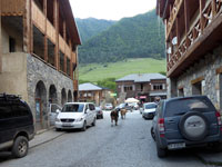 The townlet is dominated by stone defensive towers of a type seen in Ushguli ("Svan towers"). A typical Svan fortified dwelling consisted of a tower, an adjacent house and some other household structures encircled by a defensive wall. Svan Towers are the symbol of Svanetia. Nowhere in the world is there an analogue of these unique defensive structures of the early Middle Ages epoch. Historically the existence of the towers is explained by the necessity of protection against enemy and natural disasters. Therefore each house had a similar tower which served for the families as a refuge in case of war.