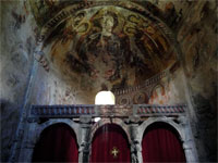 Once the country’s most dangerous road, the route to regional capital Mestia has now been upgraded. In Zhibiani, one of the larger villages, ancient Svan defensive towers overlook the winding lanes and wandering livestock. Substantial stone buildings of two stories, upper floors fronted by enclosed wooden balconies, lie in varying states of repair. Despite its rough and ready nature, for centuries Svaneti proved a safe and remote repository for art and learning, usually under the protection of Orthodox monasteries. On a hill overlooking Zhibiani, against the backdrop of Shkhara’s snowy 5,000m massif, LaMaria monastery remains home to the Bishop of Upper Svaneti. A bearded and robed monk rings the peel of three bells every day.