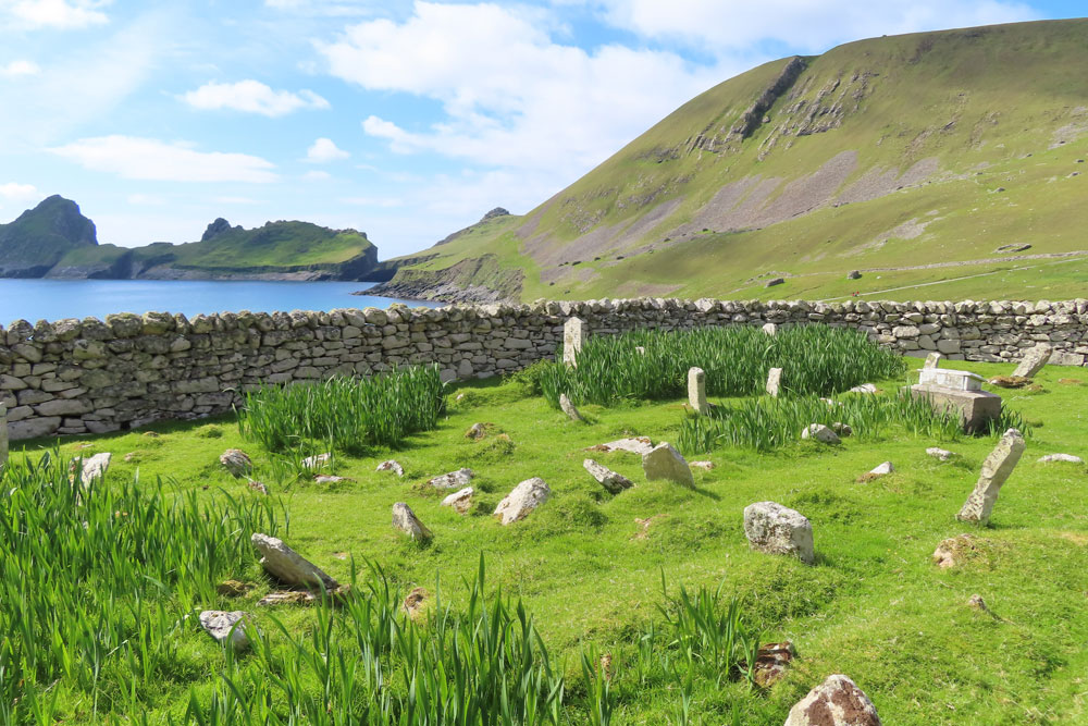 As an isolated island of the remote St Kilda Group, Boreray island is one of the most far flung and weather impacted islands of the North East Atlantic. Imagine trying to live here during stormy weather. Landing requires jumping or swimming ashore; and yet the island has been lived on or visited from Neolithic times. Collecting seabirds and their eggs, and storing them for winter, may have been even more important than raising sheep.