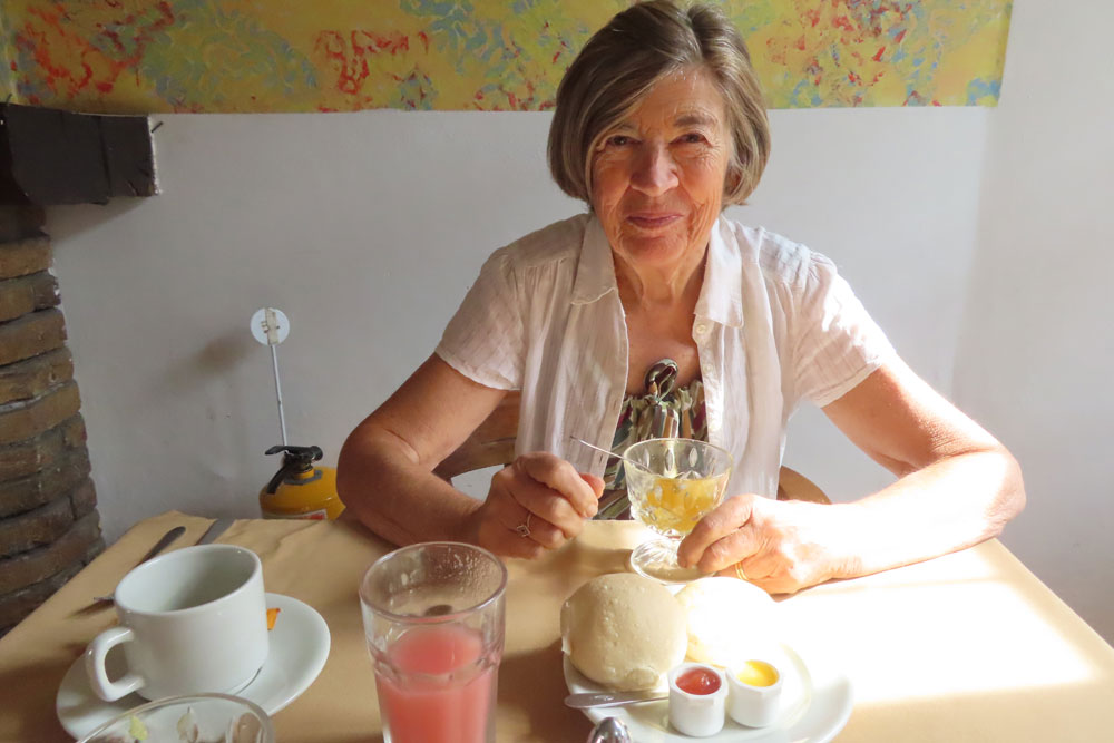 Next morning we had a leisurely breakfast at 9 o’clock, and this was much better than we had expected, having read Tripadvisor. We were the only people in the vaulted restaurant and the sun shone on us