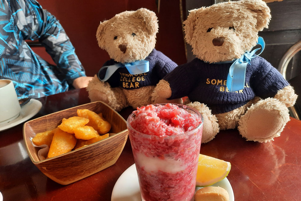 We went out exploring at 11 am., went into the Pantheon for the heroes and tried to enter a museum , which we discovered was only open for a half hour period. We ended up at the Bridge of Humiliation and went into the inviting café nearby where we had a smoothie and a cheesecake each. The waitresses there were fascinated by the boyzz.