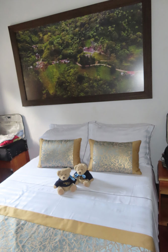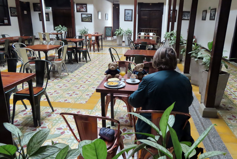 The hotel, Leyenda, is charming, but the room extremely small and minimalist. We both went out for a short explore at 5 pm. And we stopped at a café. It had been recommended by the guide. It was pleasant, but the cakes were nothing to write home about.