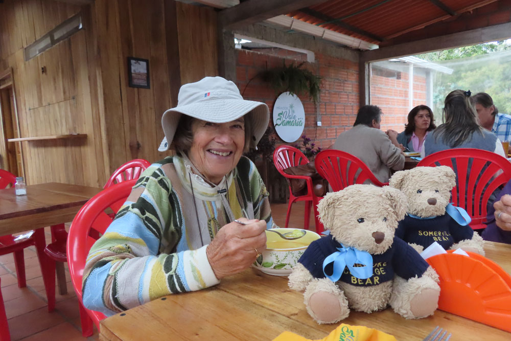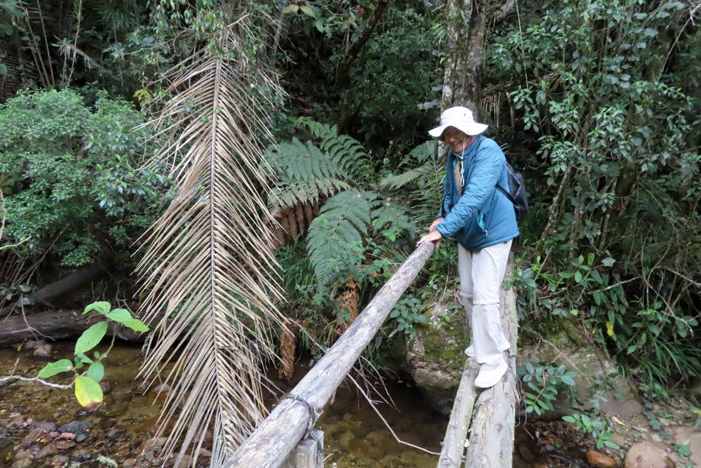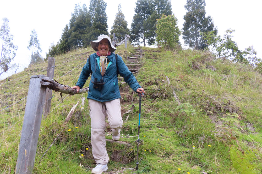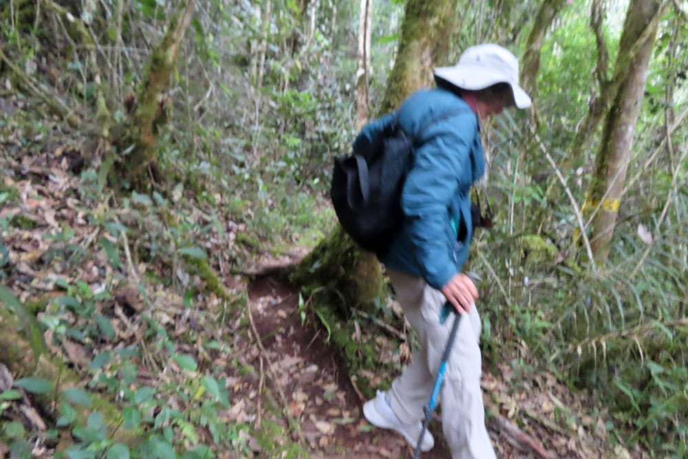 Then we had a very nice warm aromatic drink with cinnamon which is just what we needed because we had been quite cold in the jeep. We continued upwards for about another 20 minutes to reach the highest place around this at 2900 Metres. We ordered our lunch and then set off on a walk and being taken far further than we thought it would be. After descending the steep steps, we then found ourselves entering a jungle, and this also was downhill and went on forever. Eventually, we emerged knowing that we had to climb up all the way again, a daunting task for Chris. Anyway, she eventually made it by 2 pm.