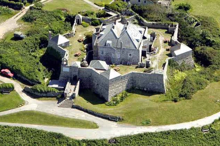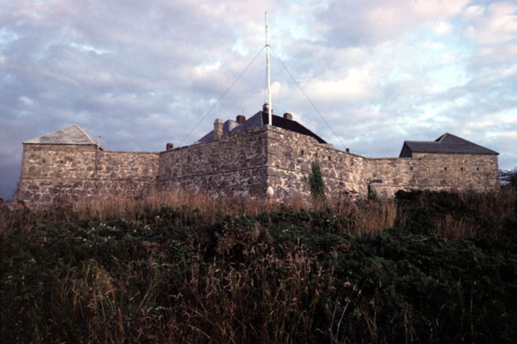 Star Castle is at the centre of a fortification system around the west side of St Mary’s known as the Garrison. The walls of the castle take the shape of an eight-pointed star. It comprises an outer wall around the outcrop of Hew Hill, protecting the town and the castle, with strategically placed gun batteries at regular intervals around the outer wall, allowing covering fire at all angles. A redundant windmill was converted after 1831 into Garrison Tower as a lookout tower for HM Coastguard.