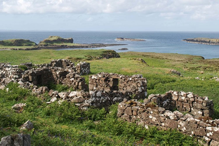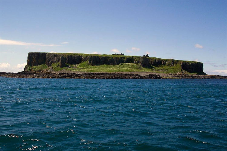 The stunning Isle of Lunga is the largest island in the Treshnish archipelago. Of volcanic origin, Lunga has been described as 'a green jewel in a peacock sea'. Lunga still bears the remains of blackhouses. The highest recorded number was 29 in 1794, declining to 15 by 1891 and only 5 by 1931. It is difficult to say exactly when the Lunga village was abandoned. Fraser Darling stated in 1940 that the villagers left “eighty years ago”, and H. Haswell-Smith, in “The Scottish Islands” says that “year-round occupation ended in1824” when one Donald Campbell and his dependents left, but regular summer occupation continued until 1857. The graves of some of the islanders are to be found in the churchyard at Kilchattan on nearby Luing. To the northeast of the island lie the remains of the ruined village, which was abandoned in 1857.