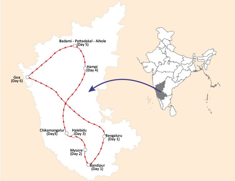 Pride of Karnataka with Goa (5 nights / 6 days): Bengaluru (Bandipur) - Nanjangud - Mysore - Halebidu - Chikamgaluru - Hospet -- Goa - Bengaluru