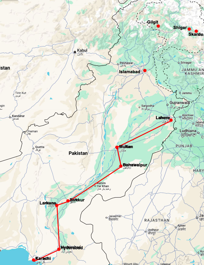 Southern Pakistan Lahore to Karachi in fact start at Karachi