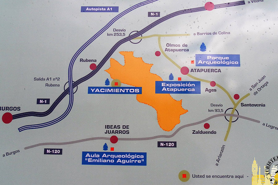 The archaeological site of Atapuerca is one of the most important in Europe, because it has traces of hominid life in the area from a million years ago. The site lies in the small municipality of Atapuerca, about 20 kilometres north east of Burgos. The Sima de los Huesos is a cave where bones from over 32 bodies of people of all different ages and both genders have been discovered, and is one of the best known examples of a colony from that era. The site was declared a World Heritage Site by UNESCO in 2000.