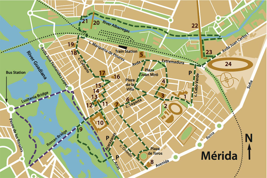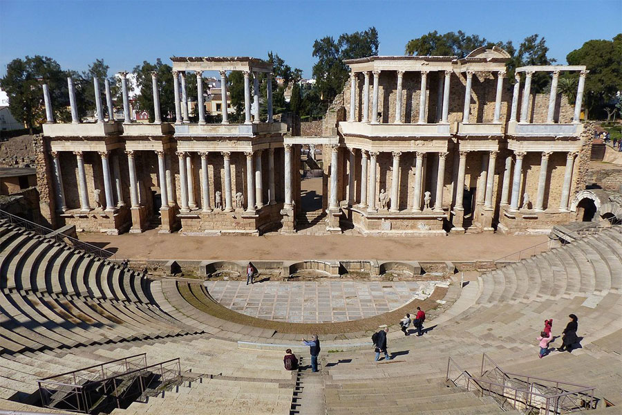 Mérida, the capital of western Spain's Extremadura region, was founded by the Romans in the 1st century B.C. Remains of the ancient city include the still-used Teatro Romano, which has a double tier of columns rising onstage. The ancient Puente Romano, a 792m bridge spanning the Río Guadiana, adjoins the Alcazaba, a 9th-century Islamic fortress built over Roman walls.