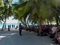 On 24 Oct 2014, we arrived on the Silver Explorer to visit Palmerston. On board was Stanley Mathurin, the same man who had been shipwrecked on Palmerston almost 60 years ago in November 1954 on board Commander Victor Clark’s 33-foot ketch Solace . Stanley was welcomed by all the islanders, including a handful of men and women who remembered Stanley from his shipwreck. Lead by Papa Orometua Ina Moetaua and his band, the children of Palmerston Lucky School to welcome the cruise ship passengers whilst Stanley was received into the home of the same family who hosted him 60-years ago, and once again tasted local delights amongst which was bosun bird, parrot fish, and a breadfruit from the very tree which he planted himself when liiving on the island. After his brief half day stay, Stanley returned to Silver Explorer and sailed away once more. And the rest of us with him!