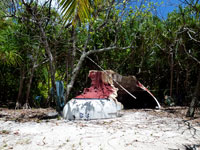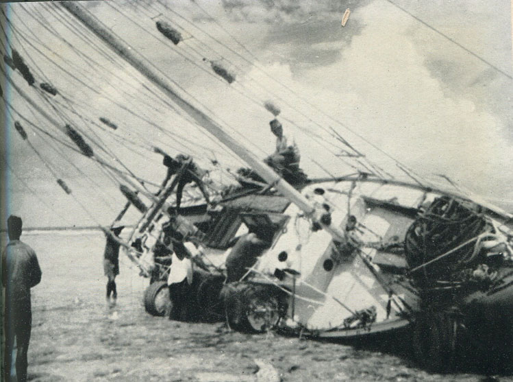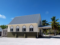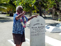 In November 1954 Commander Victor Clark and his sole crewman Stanly Mathurin were marooned on Palmerston for 9 months when their yacht, the 33 foot ketch Solace, was shipwrecked. On their last night of a short stay anchored off the coral reef of Palmerston, the wind unexpectedly changed direction throwing Solace onto the reef, and incurring great damage. The adventure is covered in his life story ‘On the Wind of a Dream’. Commander Clarke sailed on to New Zealand when his boat was repaired to New Zealand, taking with him several men from the Island. He returned later and then went on to England where he married and had two children. Commander Clark died in 2005. His daughter Rose returned to Palmerston in 2011, bringing his ashes and he is now buried in the graveyard next to the Church. Rose Clark, is currently (2014) working on Palmerston as a teacher with a special needs student.