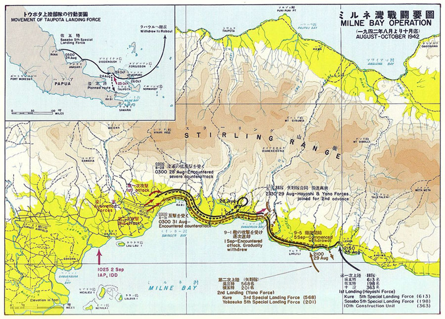 - The Japanese landed on the wrong beach, further from their target than they had intended. But they quickly began their advance towards the airfields. Heavy fighting followed as they encountered the Australian Militia troops that formed the first line of defence. These troops were steadily pushed back, but the Australians brought forward veteran Second Australian Imperial Force units that the Japanese had not expected. Allied air superiority eventually tipped the balance, providing close support to troops in combat and targeting Japanese logistics. Finding themselves outnumbered, lacking supplies and suffering heavy casualties, the Japanese eventually withdrew their forces, with fighting coming to an end on 7 September 1942.