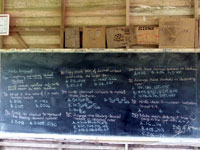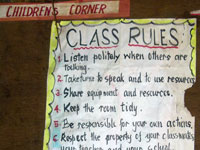 About 20 minutes later we arrived at an open meadow surrounded by houses. It turned out to be a soccer field and the buildings were the school, the library and the 3 teacher’s houses of the village. I was particularly impress with the school rules which could form the model for life in our house!