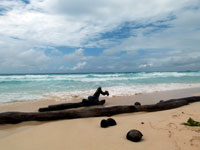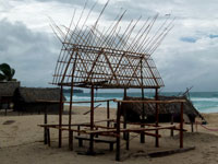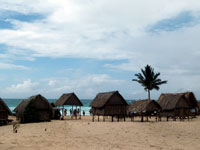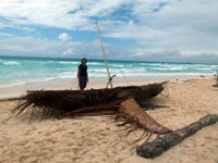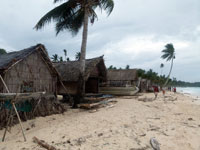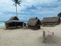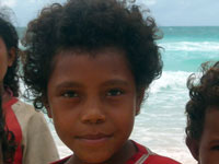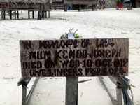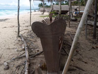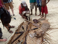 After the school we continued our walk and arrived at the village on the sea 5 minutes later. The village was built on a very windy, sandy beacht. The village appeared to me at first to be on the open sea, but I then realised that the lagoon here was so big that it seemed like being on open sea. The villagers were very welcoming and some had handicrafts to sell. Even old stone adzes and stone axes are offered.
