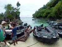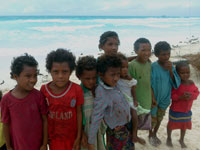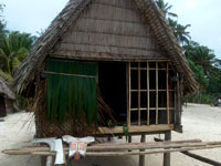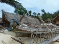Due to bad weather forecasts our visit to Iwa Island was cancelled and we would head for Yanaba Island instead.The inhabitants of this island have no phone and no email. So they had no idea that were were coming. Conrad went ashore first to get permission, and the passengers folled an hour later. The narrow entrance through the reef surrounding the island was just wide enough for one Zodiac. Yanaba Island itself was a raised reef.