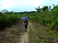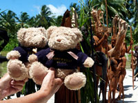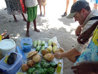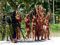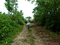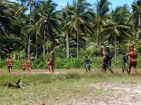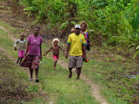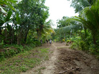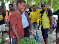 We walked over to the other side of the island to see another village, and their "spirit house". However when we got there, local politics between the two villages, meant the the second village would not let us enter the village, let alone see the spirit house. We gathered that the ship had paid the first village, but that the money destined for the second village and their spirit house had never arrived, so the pulled up the drawbridge and refused us entry. We just turned round and walked back across the island the way we had come. Streaming back from our arrival beach were masses of locals laden with produce, the supply ship had just arrived and staples like rice and even cement had to be carried back along the track, perched on people's heads.